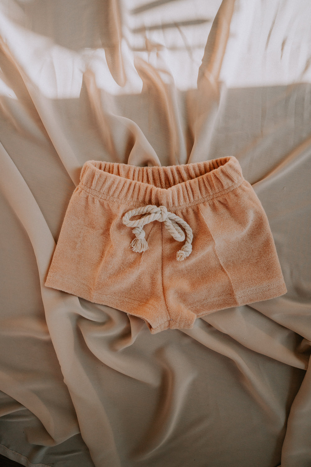 Fabriqués à partir de tissu ‘’ratine’’ de coton 100% biologique, ces shorts sont doux, confortables et respirants, ce qui en fait la pièce idéale pour les journées chaudes.