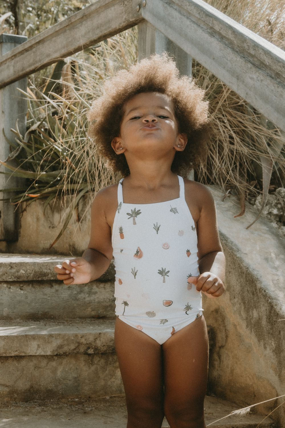 Notre si mignon one piece est de retour avec une coupe améliorée. Confortable, il offre un ajustement parfait au dos. Offert dans notre Little Market, un imprimé doux et fruité, parfait pour l’été!