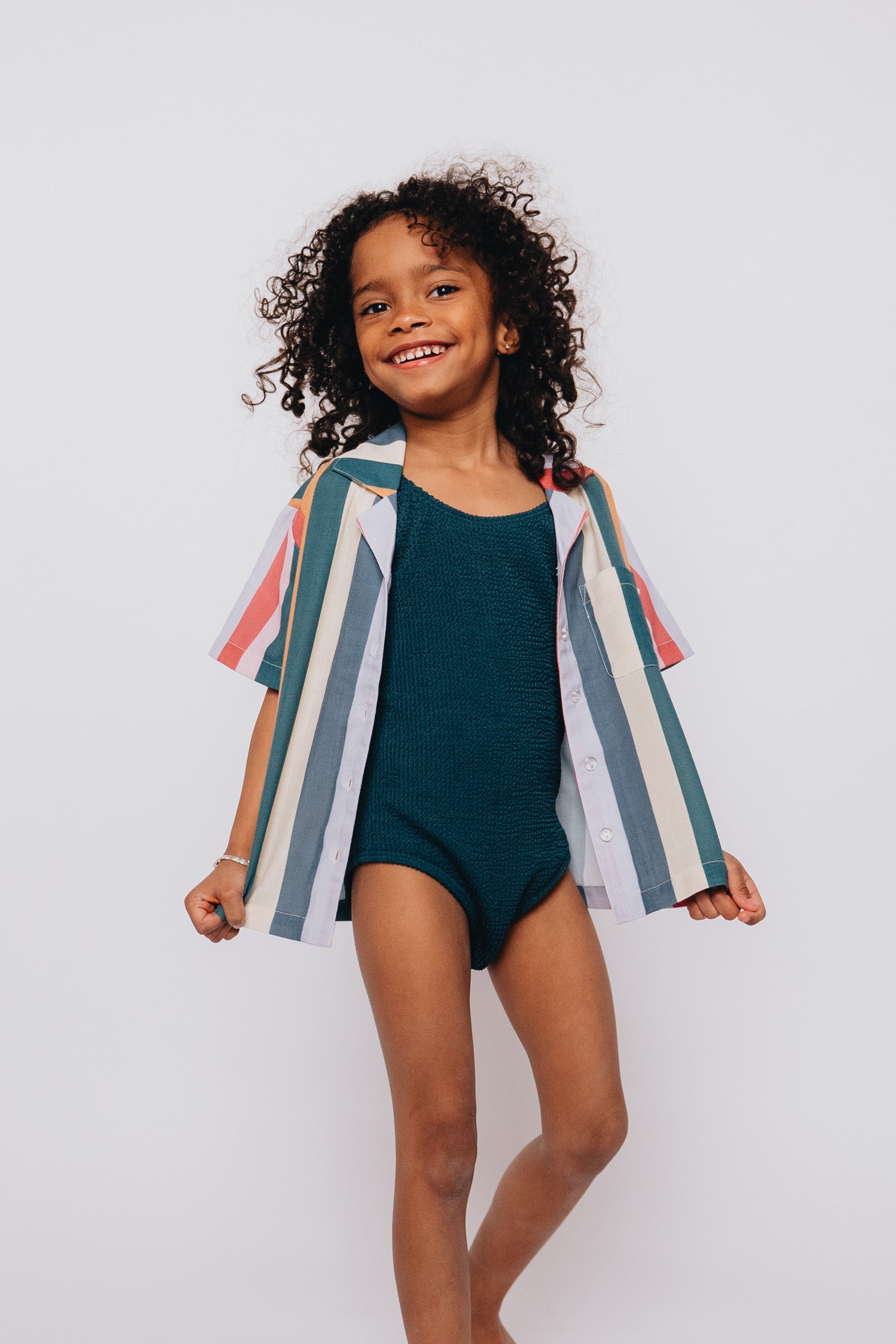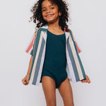 Ce maillot froncé couleur pin est idéal pour ton petit – il est confortable et prêt pour toutes les éclaboussures et le soleil radieux!