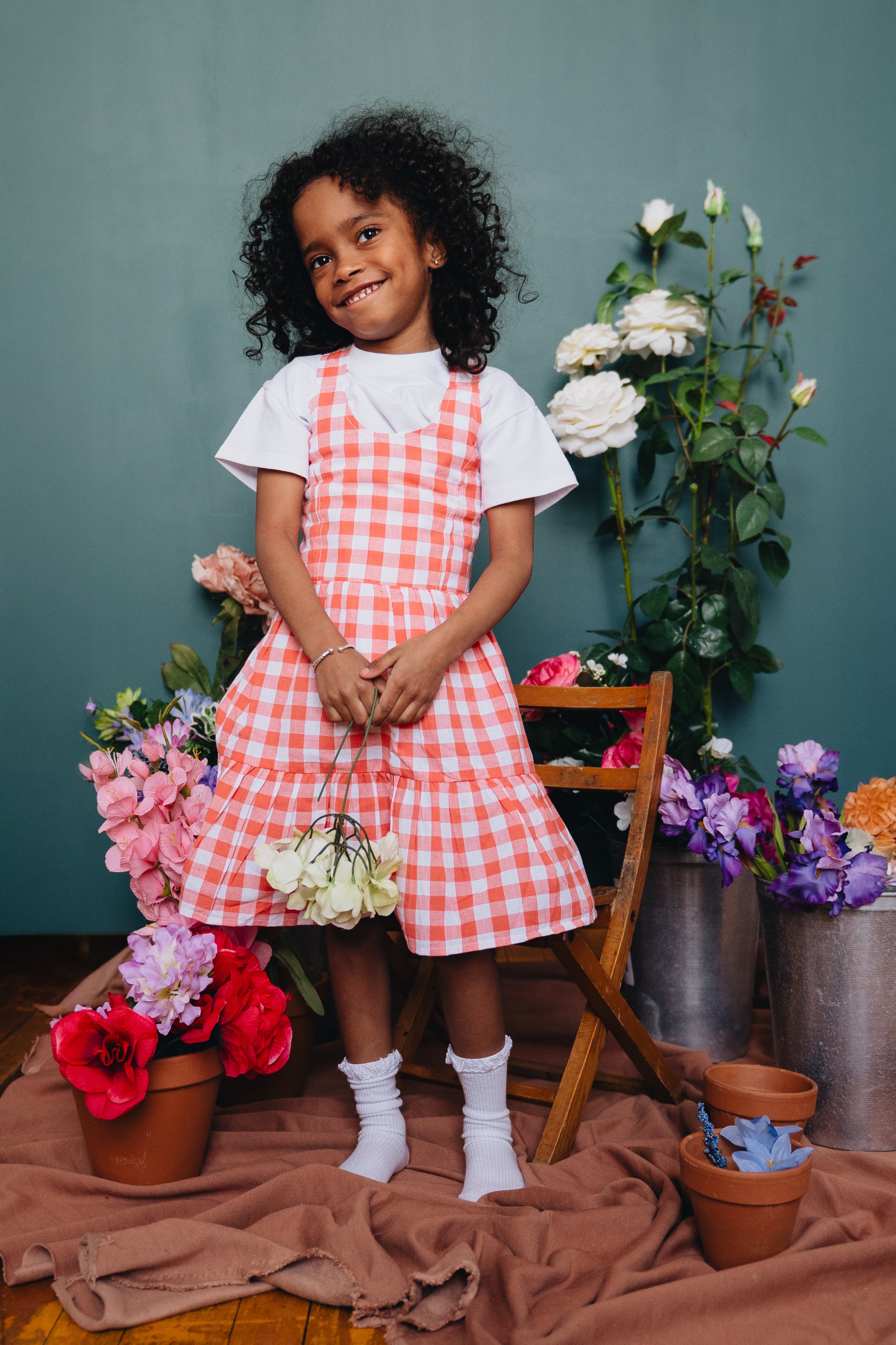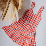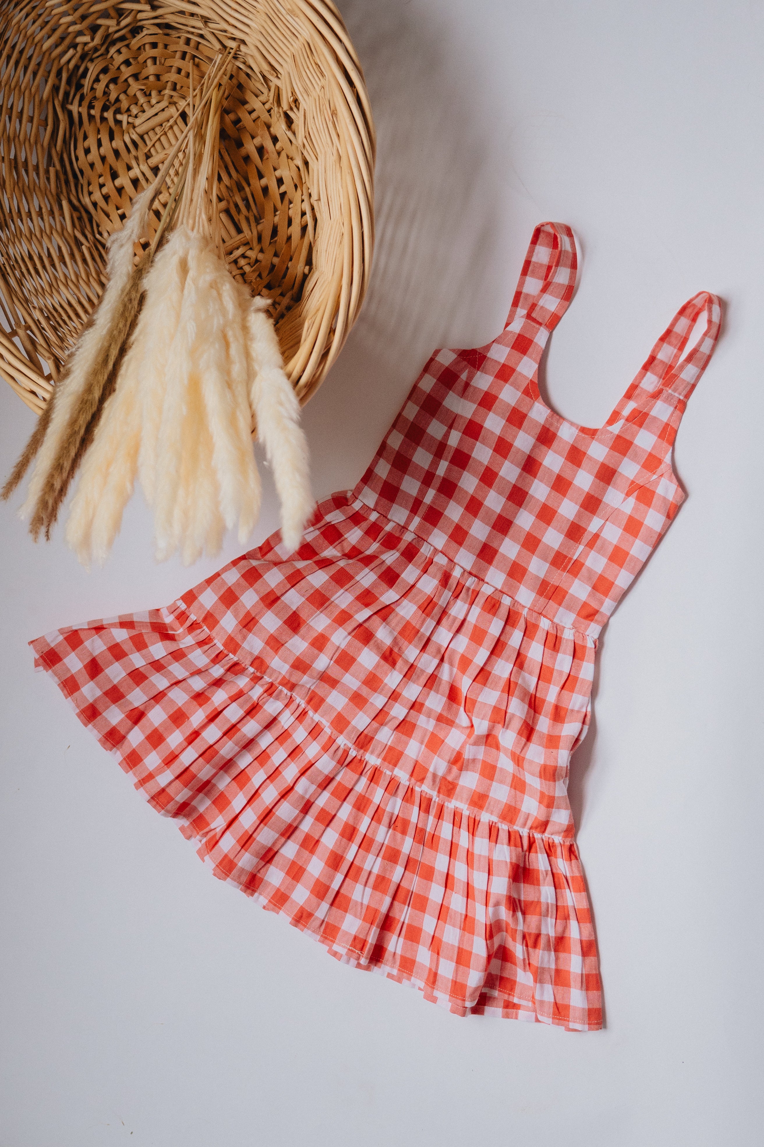 Cette robe à carreaux rouges est légère et confortable, le choix idéal pour les journées ensoleillées et les moments de jeu en plein air.
