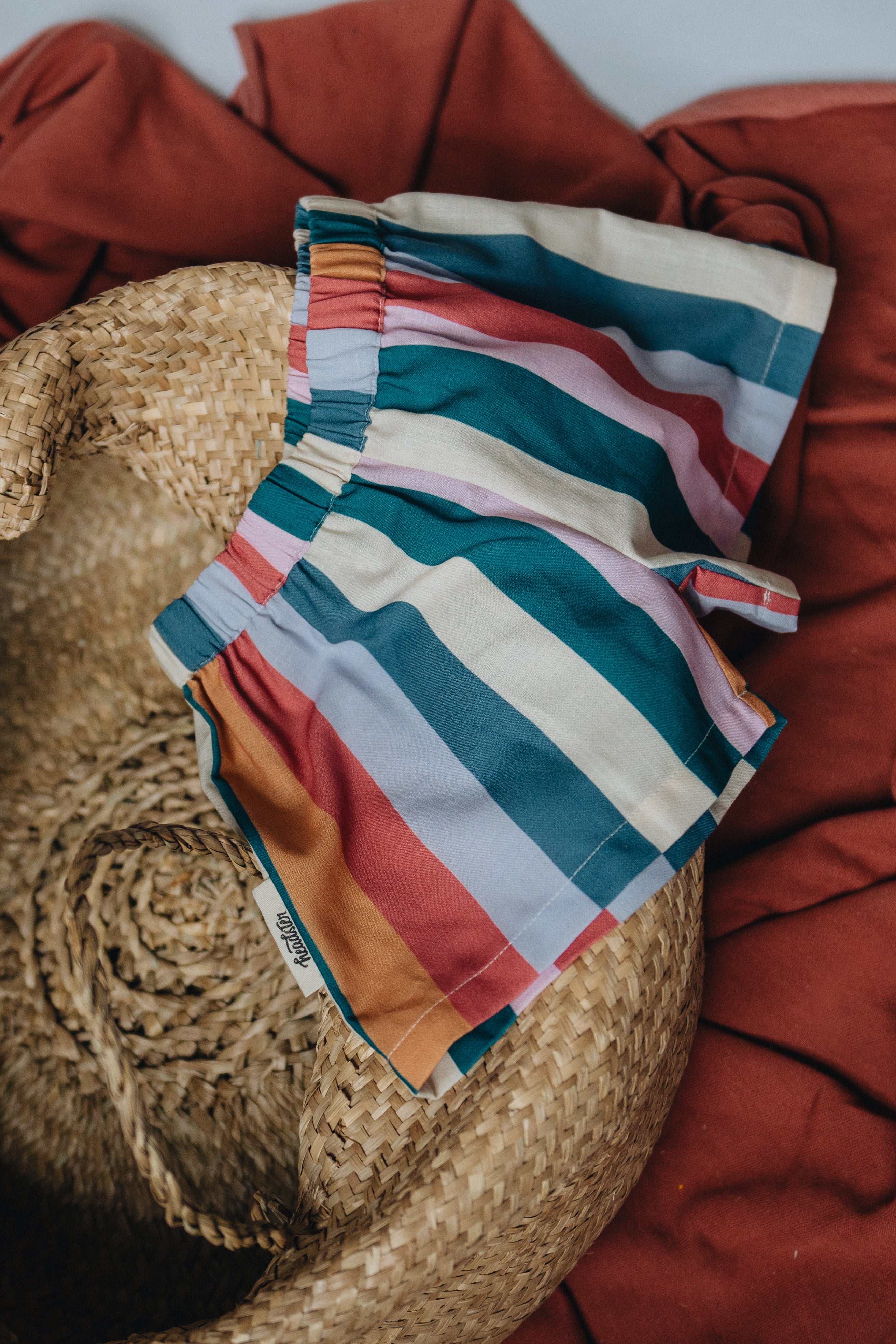 Fabriquée en Inde par une entreprise dirigée par une femme, qui met son savoir-faire au service d’une mode plus éthique. En offrant des emplois à des femmes de sa région dans des conditions respectueuses, elle leur permet de développer leur autonomie tout en perpétuant des techniques artisanales précieuses. De plus, elle redonne vie à chaque morceau de tissu en les transformant en accessoires et tote bags, évitant ainsi le gaspillage textile.