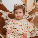 Inspiré des souvenirs d’été à la campagne, cet imprimé évoque les moments simples : jouer dehors, cueillir des fruits, courir dans l’herbe et profiter du soleil.