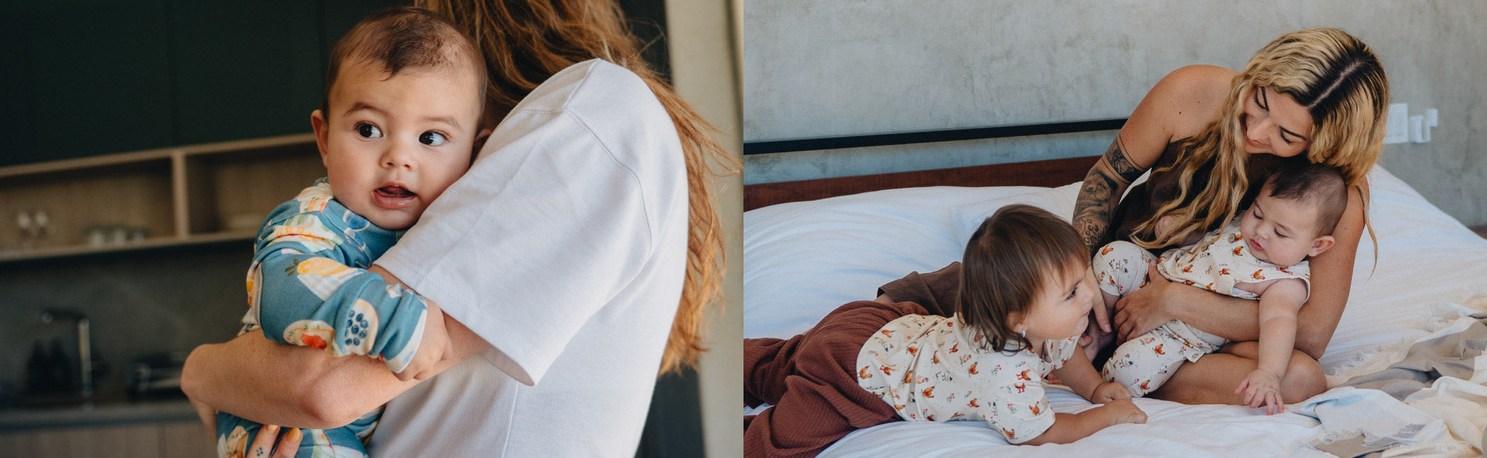 Créer des vêtements avec conscience, soutenir une production responsable et bâtir une communauté de familles qui partagent les mêmes valeurs : douceur, respect et amour pour l’enfance.
